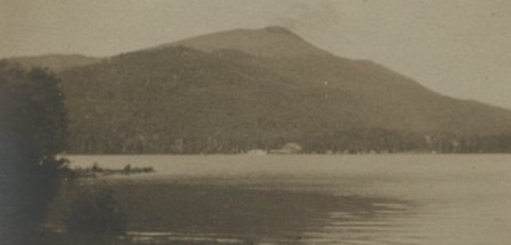 Of course an excursion steamer was part of William West Durant’s scheme for making the Compleat Resort out of the Raquette Lake-Blue Mountain Lake area. He launched the 75-foot Tuscarora on Blue Mountain Lake in 1900, but lost control of all of his businesses that same year. Many of Durant’s schemes faded with his departure, but the popularity of steamboat excursions remained. His transportation network, the steamboats large and small, as well as the Marion River Carry Railroad was taken over by a group of businessmen from Raquette Lake and wealthy camp owners in the neighborhood. The new business was named the Raquette Lake Transportation Company. The company marketed day-long excursions from Raquette Lake to Blue Mountain Lake and return, which afforded the opportunity to “visit two of the most charming bodies of water in the Adirondacks, and the combination of Lake and Mountain scenery is unexcelled anywhere in the North Woods.” Excursionists could purchase a pamphlet that described the scenery, hotels, and camps of the rich and famous along the way. It urged “some of the more strenuous” to climb Blue Mountain, which it says can be accomplished in three hours (and that from the lake!), or the shorter hike to Sunset Point (probably today’s Castle Rock). The view from the latter was admittedly nothing compared to that on the top of Blue Mountain where “it is said that on a clear day twenty-nine bodies of water may be counted.”