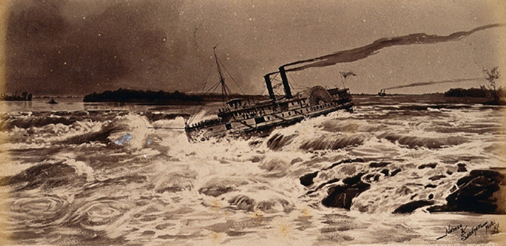 Boats were essential elements of resorts on water. There were sturdy rowboats in the hotel liveries for guests to take out themselves, and boats that came with fishing guides. And for the less adventurous guests, any self-respecting resort had excursion steamboats. In northern New York, a fleet of steamboats delighted tourists in the Thousand Islands, some even running the Lachine Rapids.