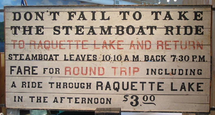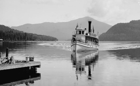Visitors to the Adirondacks didn’t have the thrills of the big river, but there were plenty of opportunities to enjoy the spectacular mountain scenery from the deck of a steamer. In Lake Placid around the turn of the century, visitors could admire Whiteface Mountain from the water aboard the 73-foot-long Doris. On Schroon Lake, there was Effingham, 68 feet long and the old lady of the region’s fleet, having been built in 1873.